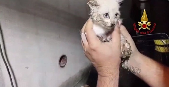 Gattino resta incastrato in un tubo, salvato i Vigili del fuoco dopo 5 ore – VIDEO