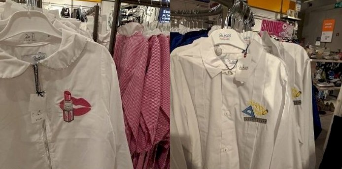Labbra carnose con rossetto per le bambine e squadra, righello e matita per i bambini, e in giallo la scritta “school”: sono questi i nuovi contrassegni dei grembiuli messi in vendita da Upim. Come dire lei bella donna e lui ingegnere, tutto previsto e predestinato. Una mamma si è recata in una filiale romana di Upim, il department store italiano gestito dal Gruppo OVS, perché voleva comprare i grembiuli ai suoi figlioletti. Non ha potuto non notare che, esposti tra i grembiuli blu e rosa, c’erano anche questi bianchi, con distintivi un po’ sessisti cuciti nel petto. Ha fatto una foto, e l’ha posta su Facebook, accompagnata da una “letterina”.