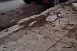 La mancanza di una superficie pedonale adeguata costringe i cittadini a camminare direttamente sulla carreggiata, con buche profonde e asfalto deteriorato, con tutti i rischi che ne conseguono, soprattutto per i bambini che frequentano la vicina scuola.