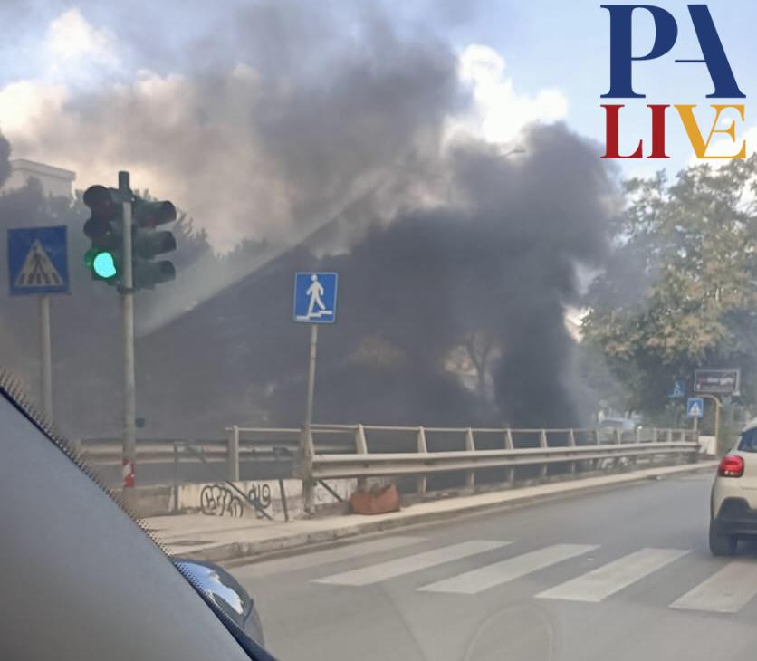 Viale Regione Siciliana, incendio nel sottopasso all’altezza di via Sardegna