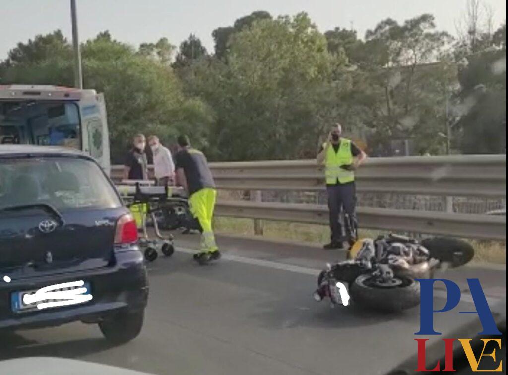 Incidente all’altezza dello svincolo di Capaci: una moto impatta contro un’automobile. Sanitari del 118 e mezzo Anas sul posto.
