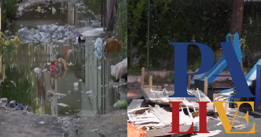 Il collettore fognario del palazzo non funziona decisamente come dovrebbe. Nella parte posteriore, le acque reflue si addensano nelle vie laterali del plesso, causando la formazione di una pozza il cui odore diventa nauseabondo con l’aumentare delle temperature. Lo stagno diventa inoltre nido per le zanzare, che infestano l’area, così come le erbacce, che andrebbero decisamente potate.