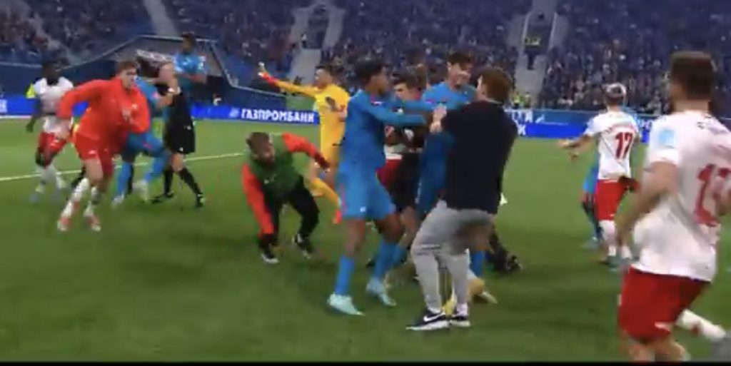 Al fischio finale, Wilmar Barrios dello Zenit si è scontrato con l’attaccante dello Spartak Quincy Promes. A quel punto, è intervenuto il difensore brasiliano dello Zenit Rodrigao, che si è scagliato contro l’attaccante dello Spartak, Shamar Nicholson. Così, in pochi secondi, la situazione è degenerata in rissa, con l’arbitro Vladimir Moskalev e gli assistenti che non sono riusciti a contenere la situazione. Alla fine, sono stati coinvolti anche i membri degli staff tecnici e i presenti in panchina.