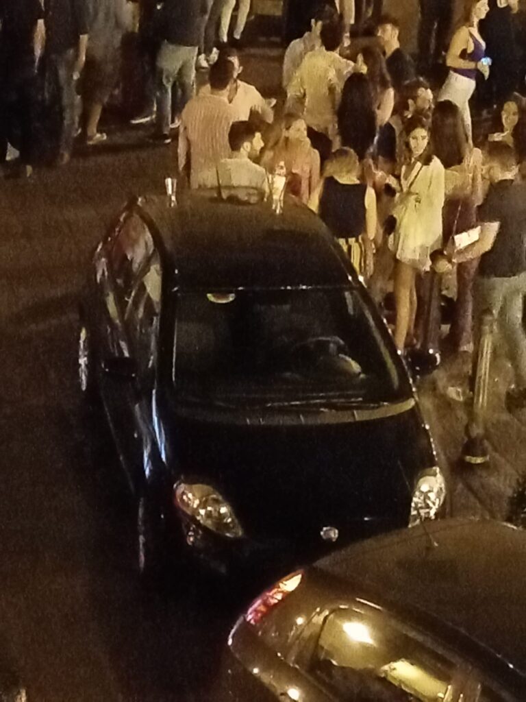 Alcuni astanti hanno lasciato tranquillamente, come si può vedere dalla foto e dal video, poggiato i bicchieri vuoti dopo avere consumato la propria bevanda sul tetto delle stesse auto come se fossero pattumiere andandosene via ed incuranti della grande mancanza di rispetto verso le Forze dell’ordine