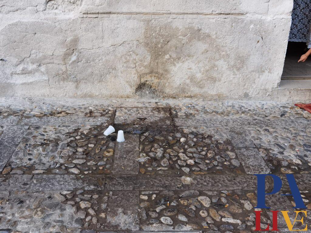 Nonostante il servizio di qualche giorno fa, che mostrava gli schizzi dell’acqua fuoriuscita da un tombino raggiungere le gambe di alcuni turisti, il problema di via Alloro resta. Vittime di tanto degrado le famiglie che abitano a pian terreno a due passi dalla fognatura.